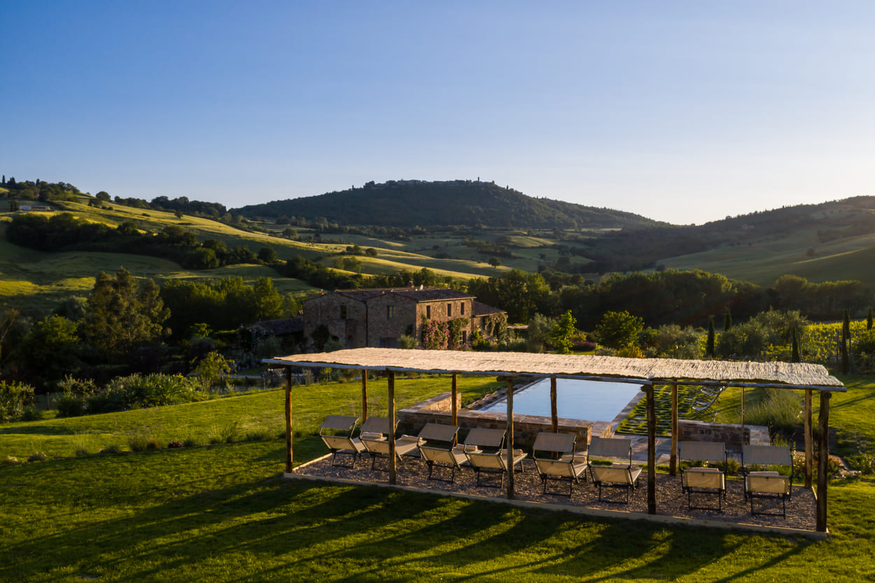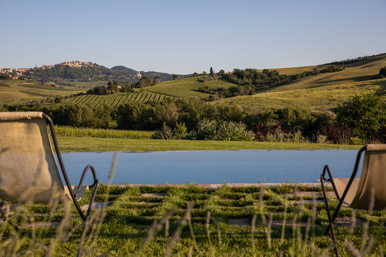 Follonico is perfectly placed for the classics – Montepulciano, Pienza, and the Val d’Orcia. Still, it also encourages a slower Tuscany: small wineries, farm shops, scenic drives with no real destination, and long lunches in villages where nothing feels staged. Come back for a swim, a book under the trees, then head out again for dinner (there are well-loved local spots nearby). It’s an ideal base if your Tuscany dream is more “taste and atmosphere” than checklist sightseeing.