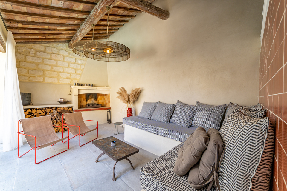 Marcelle en Camargue invites relaxation through its range of laid-back facilities. Spend afternoons lounging on sunbeds by the heated saltwater pool, recharge by the outdoor fireplace under the pergola, or browse the curated boutique offering local finds and signature items like eco‑terrazo candles.
