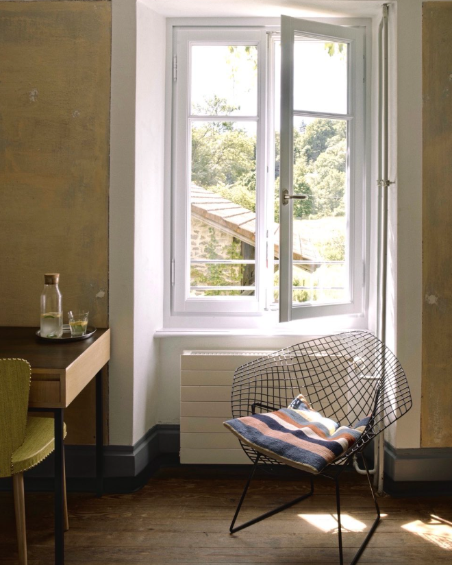 The guesthouse features five charming rooms—four spacious doubles (two with an extra bed for children) and one single room—totaling nine adult and two child beds. None of the rooms has en-suite bathrooms; guests share two WC/shower combinations and one separate WC per floor. Linen sheets, honeycomb towels, bathrobes, and cloth table linens underscore the property’s thoughtful approach to comfort and sustainability.